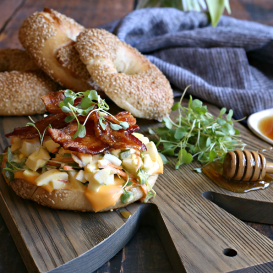 Loaded Egg Salad Bagel with Honey Roasted Bacon
