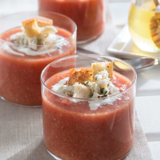 Heirloom Tomato and Honey Gazpacho with Crab